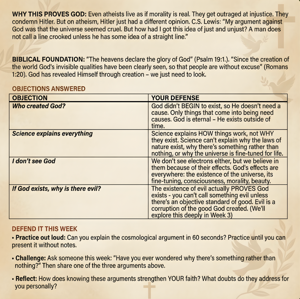 Kids learn "God created the world" but never learn why we believe that or how to answer objections. First college challenge? No defense.